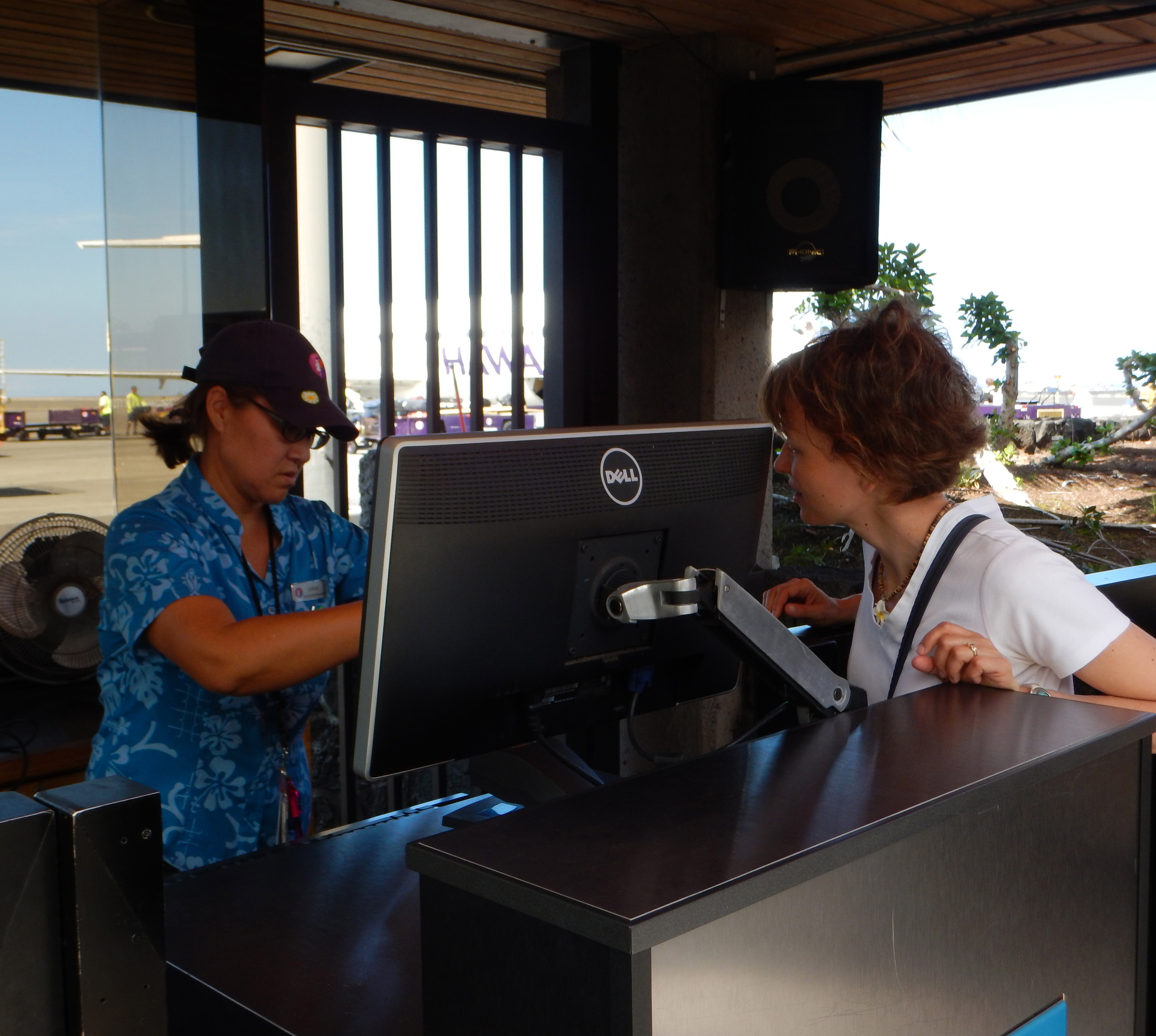 We flew Hawaiian Airlines to get from one Hawaiian island to another. Hawaiian Airlines made a note of our allergy when we called in advance. We were told that they do not serve food on these short inter-island flights and, indeed, that was the case. They allowed us to board our flights early to clean them. I asked for announcements, was never refused, but they never followed through with them, either. One flight attendant said she’d have to ask the Captain. I’m guessing he said no.